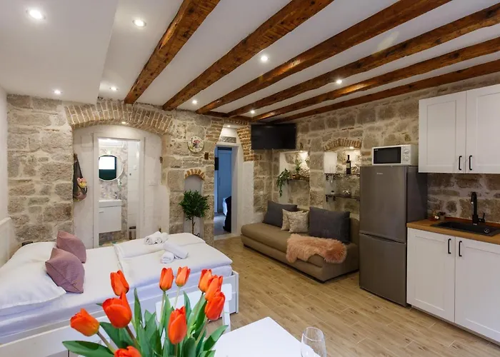 公寓坐落在Split City Centre区,步行到圣多米努斯大教堂及钟楼需要不到10分钟,为4位客人提供35平方米的住宿地.